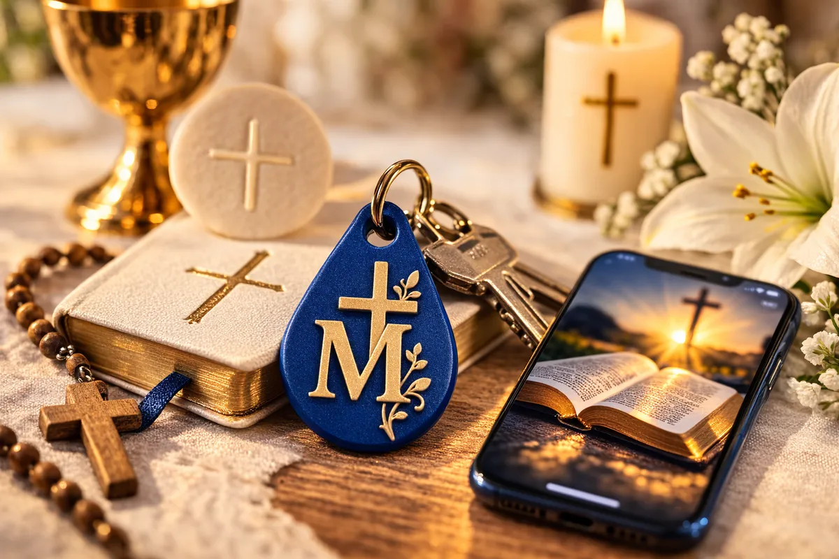 Les clés, c'est un symbole de passage à l'âge adulte. Offrir un porte-clé à l'occasion de la communion, c'est déjà symboliquement fort. Y ajouter une dimension spirituelle — un verset chaque matin — c'est lui donner un compagnon de foi pour grandir.